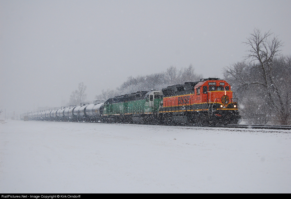 The day started off sunny and calm, and fairly warm. By the time the afternoon local got on duty, there were blizzard-like conditions that stuck to everything rather quickly. Once the train was assembled, the crew headed east for the AGP plant east of town, seen here just east of the yard.