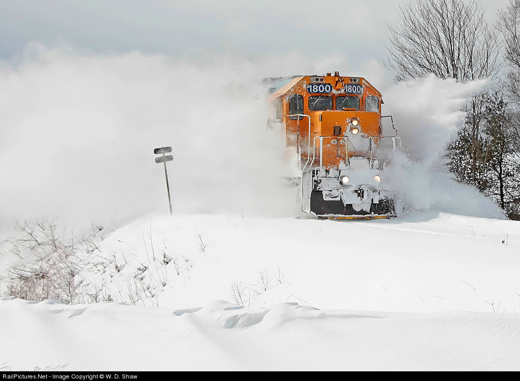 | There is a train back there... somewhere!1800 kicks up some of the snow that has accumulated over the past 36 hours, approaching the Domtar Road crossing at the south end of Martin's Siding. |