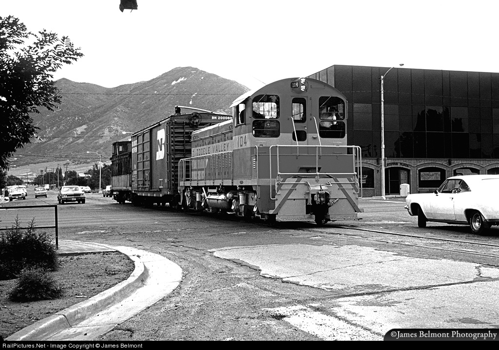 Tooele Valley Railway's Warner Turn rolls west down Vine Street at the Main Street crossing in downtown Tooele, Utah. Check out all of the GM products pictured including a Chevy Malibu, a Chevy Chevette, a Buick Skylark, and a Chevy Impala. Even the 104 is technically a GM product, constructed in April 1959 by Electro Motive Division.
