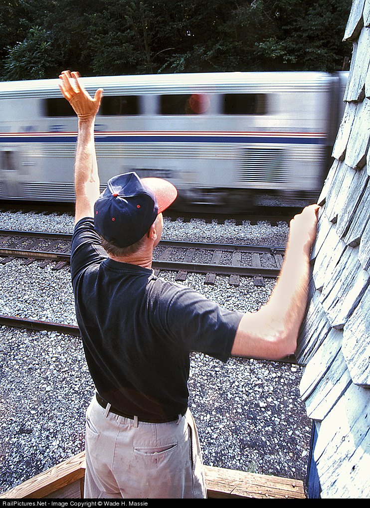 Miller operator Allen Brougham offers a friendly wave to passengers on the westbound Capitol Limited.