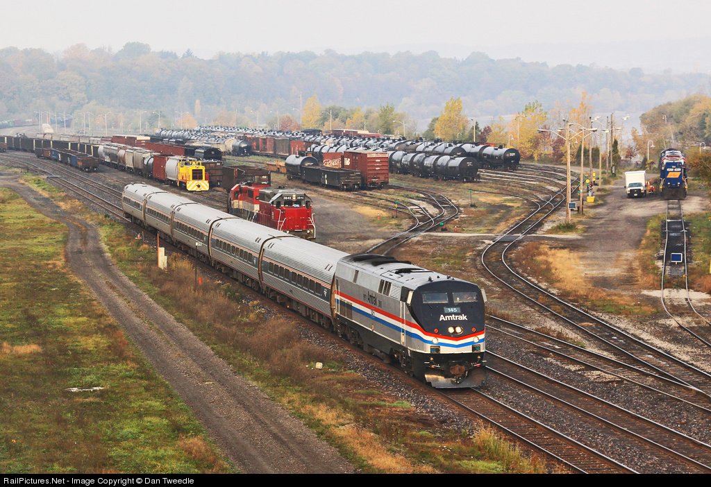 RailPictures.Net Photo: AMTK 145 Amtrak GE P42DC at Hamilton, Ontario, Canada by Dan Tweedle