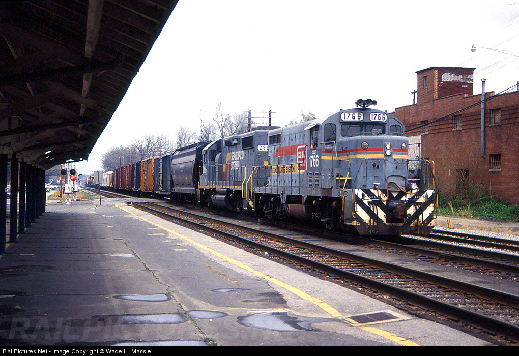 A GP 16 leads a freight past the depot in Wilson. The GP 16s didn't last long in the CSX era, this was one of the few times I got to see one in action.