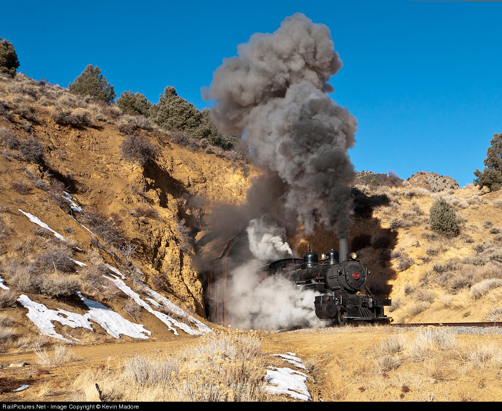 Tunnels to Virginia City - Part 1. With just over a mile to go to Virginia City, the V&T's Locomotive #29 bursts out of the East Portal of Tunnel #4 on a sunny winter morning. The original V&T line from Carson City to Virginia City incorporated no fewer than 6 tunnels, three of which were located within a mile of each other, here in the town of Gold Hill. When the Gray family reconstructed the 1.8 mile section of track between Virginia City and Gold Hill, they were able to refurbish Tunnel #4, but #3, just a few hundred yards behind this train, collapsed during the reconstruction effort and had to be bypassed. Tunnel #5, approximately half a mile further ahead of this location had long since been excavated away to make way for a highway overpass. There is actually a Tunnel #6 in downtown Virginia City, just beyond the current end-of-line. It goes under St. Mary's Church and was plugged when the original line was dismantled. The Gray family still has hopes of extending the new line to the location of the still-extant freght depot in downtown Virginia City....which would require re-opening Tunnel #6. Stay tuned!