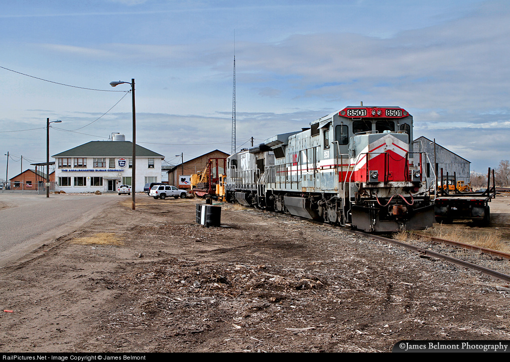 | A pair of leased Utah Central Railway GEs rest at the former Amalgamated Sugar Company property in West Haven, Utah. The UCRY 8501 was built by GE in October 1987 as LMX 8501 and leased to the Burlington Northern. |