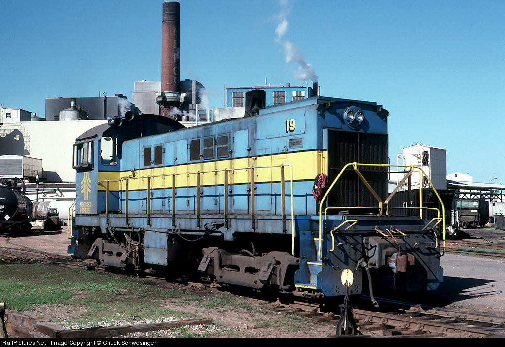 | It seemed that owing to the GB&W's loyalty to Alco's that a number of the paper mills served by or in close proximity to the GB&W employed Alco units. It had been been a chilly morning in central Wisconsin and the crew of this job had ventured into the mill at Nekoosa for a short coffee break. The sun was warming rapidly though and one of the brakemen had decided that he had already "overdressed" for the day and his flannel shirt was decorating 19's grab iron. |