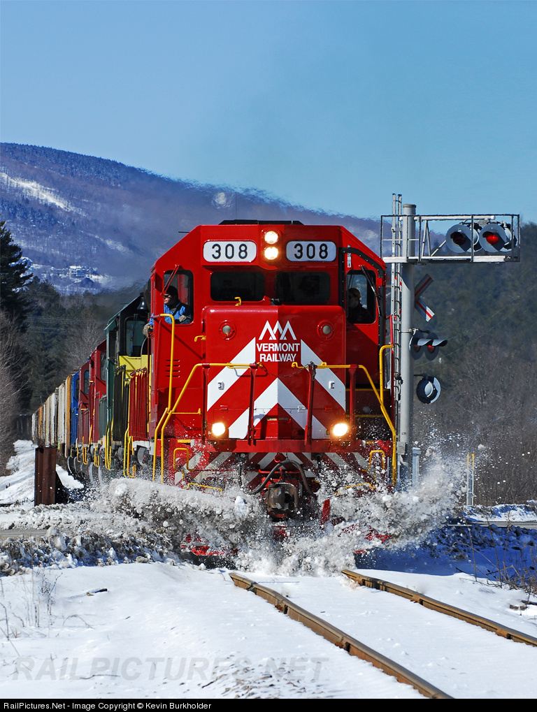 Vermont Rail System's salt extra train is hauling 48 loads from Whitehall, NY to Bellows Falls, VT and delivery to the New England Central Railroad. NECR forwards the cars for distribution between the White River Jct. salt shed (on NECR) and the Ely, VT salt shed (VRS' WACR). The train is hamering newly fallen snow at Proctorsville, VT with VTR GP40-2 308, LLPX GP40 3003, GMRC GP40 304, VTR GP40-2 303, CLP GP38-2 204, VTR GP40 301 and GMTX GP38-2 2663. The VTR 303 and 308 are both former B&M GP40-2s that VRS owns... NEW NECR Trackside Guide 2012 coming in April...http://steelwheelsphotography.com/pubs.html