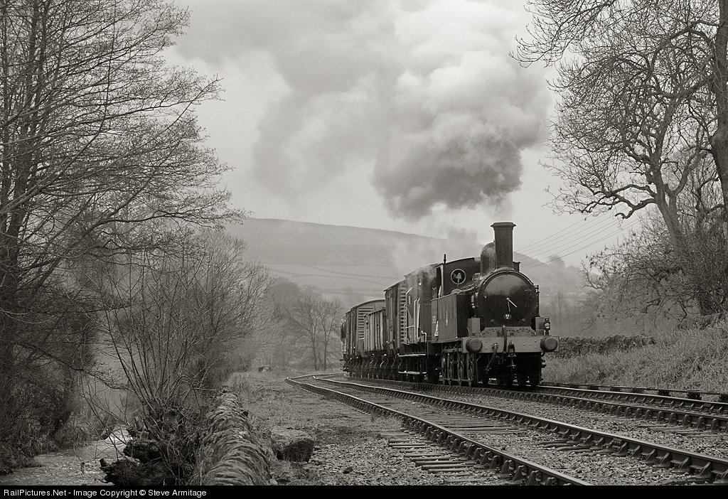 | In this timeless recreation of a local 'pick-up' freight, 'Coal Tank' 58926 strides through a misty Worth Valley towards Haworth alongside the meandering Bridgehouse Beck with her early morning train. The locomotive is a typical product of the Victorian era and was built at Crewe in 1888! These 'Coal Tank' 0-6-2s were once a 300-strong class of Francis Webb's design for the London & North Western Railway. She ended her service life with British Railways in 1958 and was eventually gifted to the National Trust and thankfully restored to working order. |