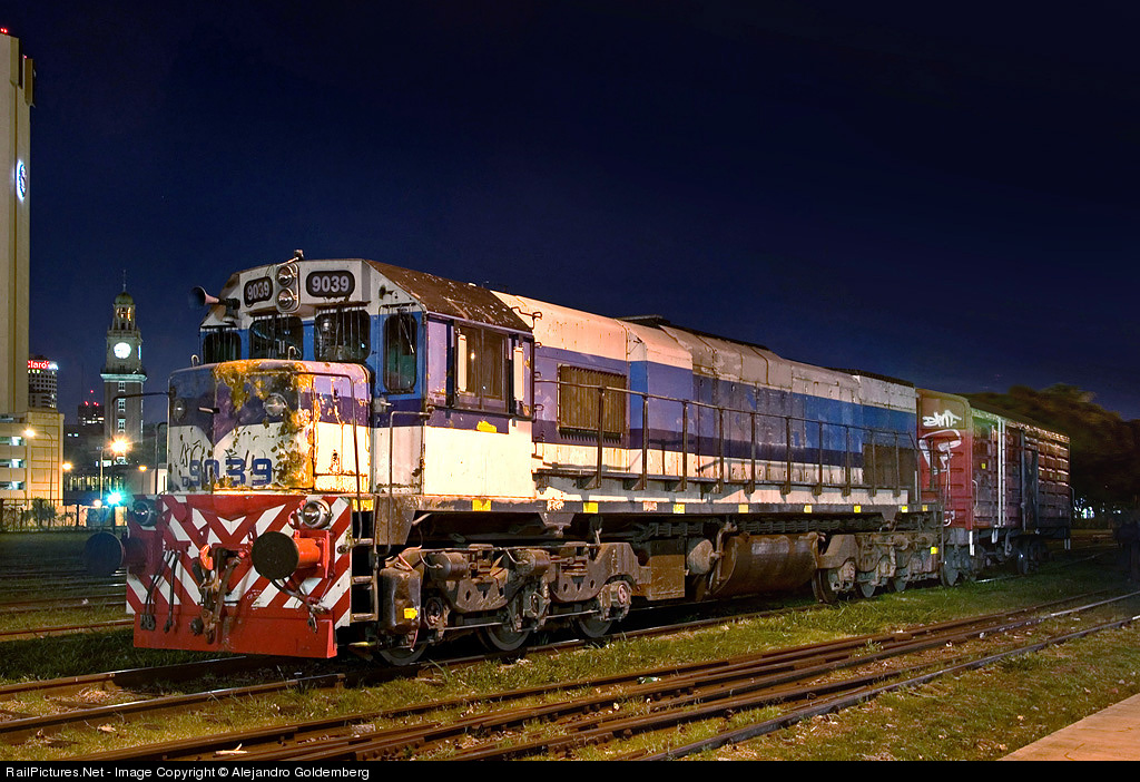 | Resting at Empalme Norte Yard, just a few blocks from retiro Terminal . This paint scheme belongs to TBA ( Trenes de Buenos Aires) but it was transferred to NCA (Nuevo Central Argentino) . Finally, a few years ago FEPSA ( Ferroexpreso Pampeano) exchange it for an EMD GR12 and now operates from here to Ensenada carrying steel rolls. |