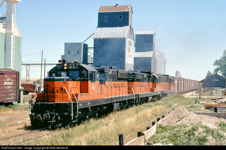 RailPictures.Net Photo: CMStP&P 557 Milwaukee Road EMD SD10 at Presho, South Dakota by Mike Woodruff