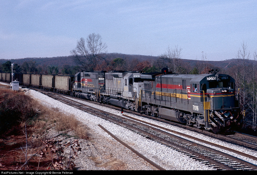 | Seaboard System C30-7 #7016 leads a Florida bound coal train past the north end of the siding. Seaboard System C30-7 #7016 was built in March 1979 as Seaboard Coast Line #7016 and later became CSX #7016 |
