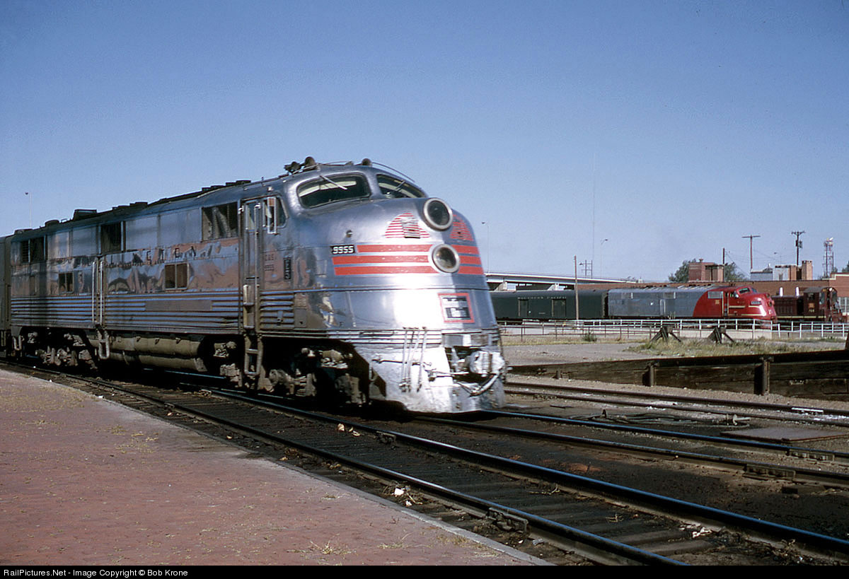 A second veteran EMD E unit arrives in Amarillo on C&S / FW&D train 7 as Rock Island E6 628 sits across the way. This train was actually east or south-bound despite the odd number.