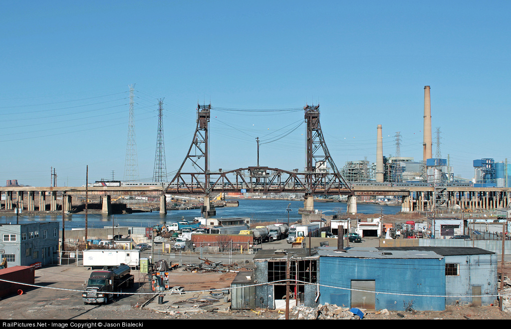 Stereotypical New Jersey – A westbound NJT diesel train crosses the Lower Hack Lift Bridge, which spans the Hackensack River, as an Arrow III train moves east. To the right are the 500 ft smoke stacks of the PSEG Hudson Generating Station which recently underwent a billion dollar renovation to remain open. It’s appalling how some of these industrial areas are kept. In the foreground it looks as if a bomb went off. Fortunately, most of NJ doesn’t look this way.