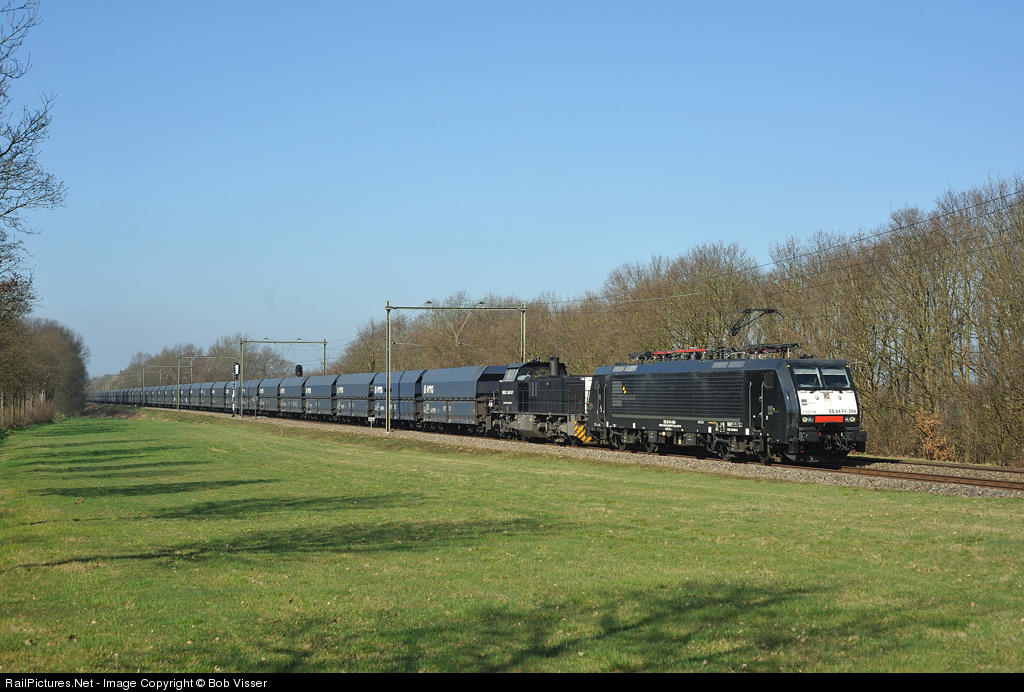 | Captrain E 189 094 + 1571 with a heavy coletrain from Amsterdam Westhaven to Möllen (D) near Emminkhuizen. The two locomotives are not coupled electrically, both have their own driver. |