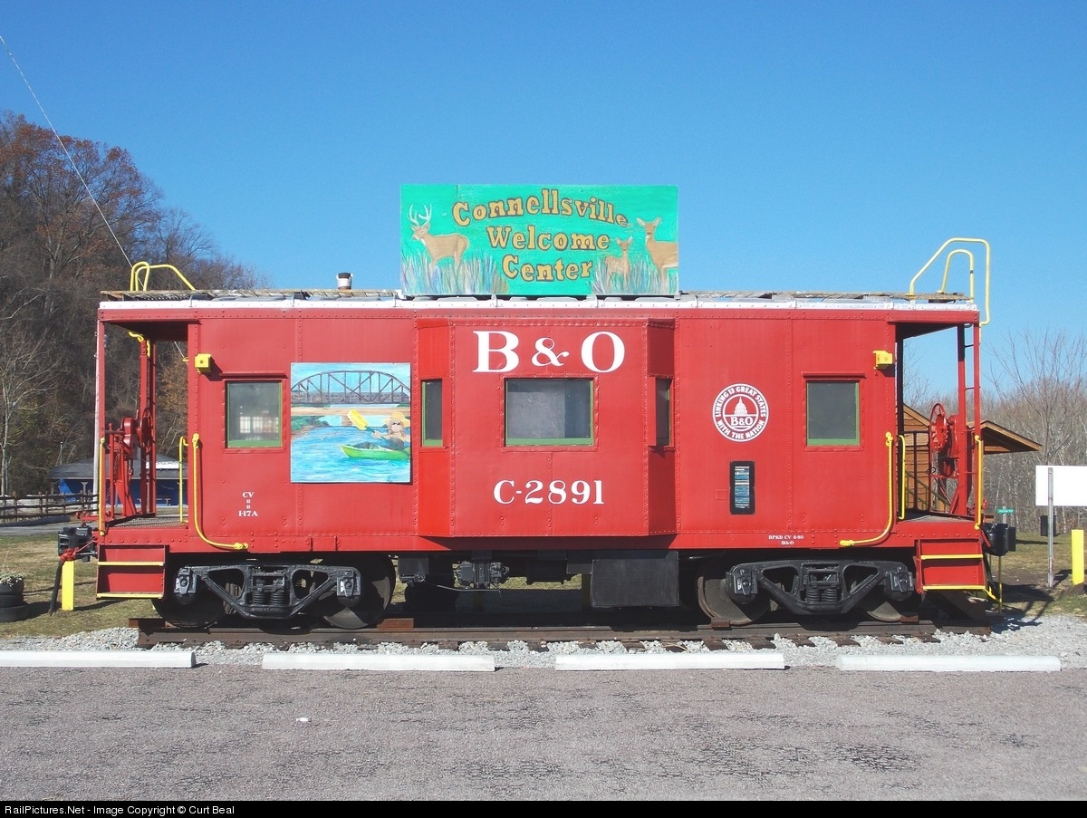 The caboose is at the former site of a P&LE rail yard. Now it's next to the Youghiogheny River Trail-Great Allegheny Passage. According to research this Class I-17A caboose was built by the B&O in Indiana in July 1956. Built as B&O C2891. Later when the Chessie System gained control of the B&O, the number on this became 902891 and it was painted in Chessie colors. Owned by the City of Connellsville, it will be leased to the Youghiogheny River Trail Council. Trail Town Outreach Corps member Emma Strong is credited with coming up with the original idea for this project. Financially this project was supported by a donation from the Sprout Fund and the Richard King Mellon Foundation. It is expected to be open to trail visitors starting in summer 2012.