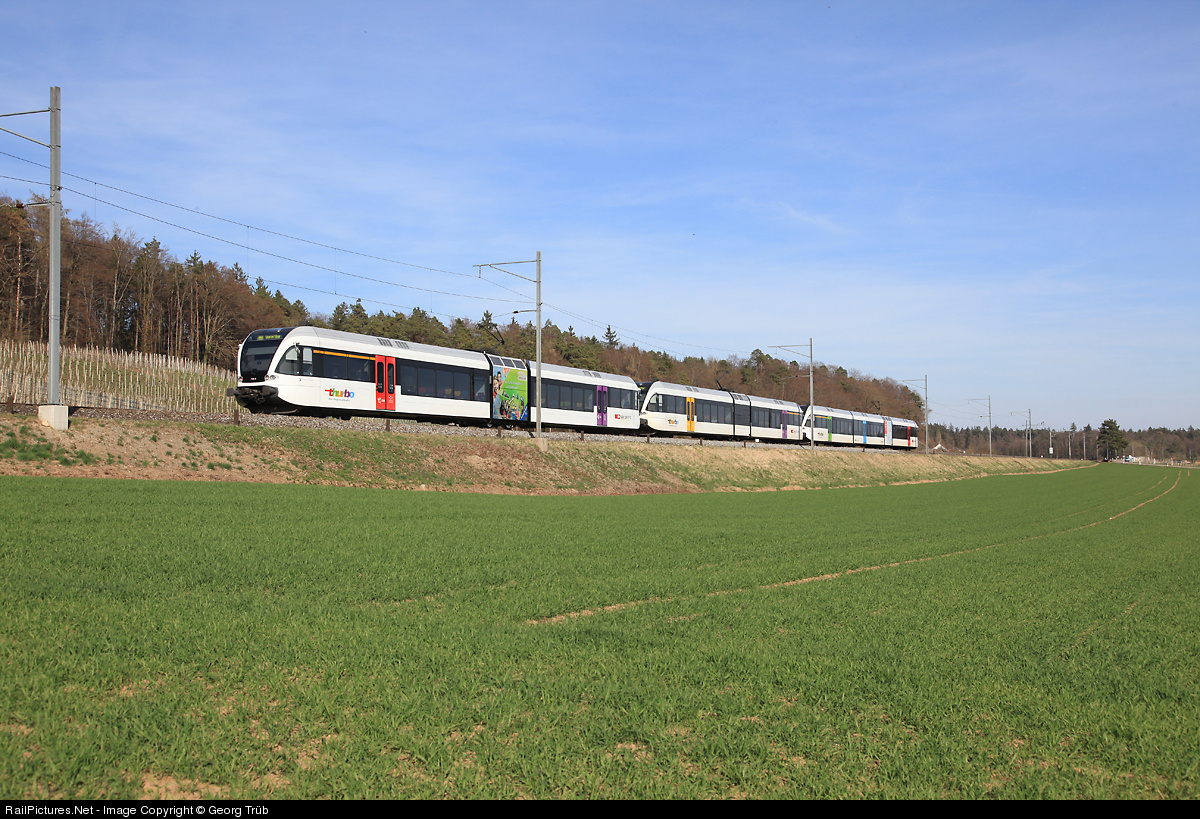 | Peak hour composition on the S 33 line between Winterthur and Schaffhausen, with two short and one long version of the articulated lowfloor trainsets "GTW" of the SBB daughter THURBO. 80 of this Stadler Rail products are in service for Thurbo in the eastern part of Switzerland, 12 more (long version) will be delivered soon. |