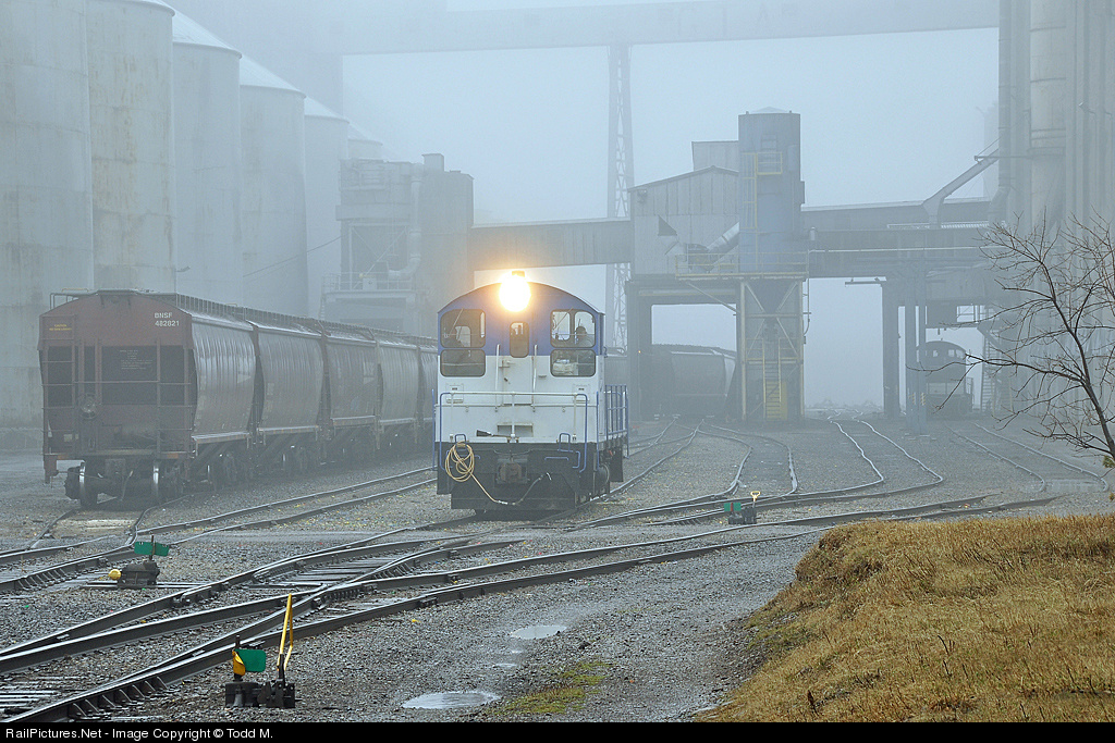 | A light rain and heavy fog mix doesn't stop the day crew and their former Soo Line SW9 from moving grain hoppers around inside the large CHS elevator complex on the Lake Superior waterfront in Superior, Wisconsin. The good news is that it's Friday afternoon so it's almost quitting time. |