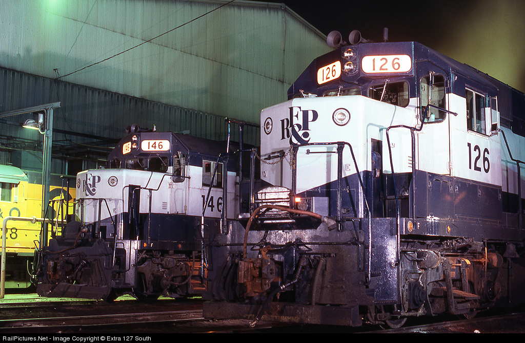 In the early 1980's, RF&P eliminated the 11:00 PM-7:00 AM shift at its Bryan Park Terminal locomotive shop. The forces working the evening shift would line up any consists requested by the RF&P and SCL dispatchers before leaving at 11:00 PM. They only movements on the locomotive side at night were crews taking out sets of power. This made it a pretty quiet place. I took the opportunity on several occasions to do some night photography, letting the Car Foreman know in advance what I was doing. On Dec. 6, 1986, RF&P GP40 No. 126 and GP40-2 No. 146 were set up to lead consists for northbound trains that would be operated during the night. By this time, CSX influence was being seen, explaining the C&O B30-7 in the background.