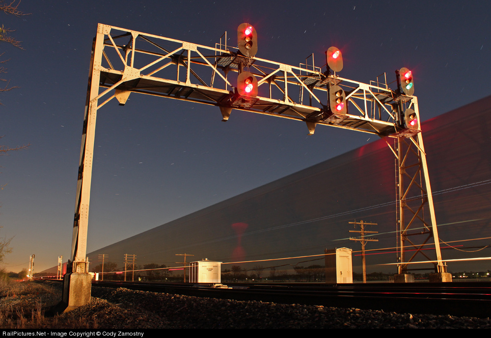 A westbound on the C&O (geographically heading north) ducks under the signal bridge at "West End North Yard" just outside of Fostoria.