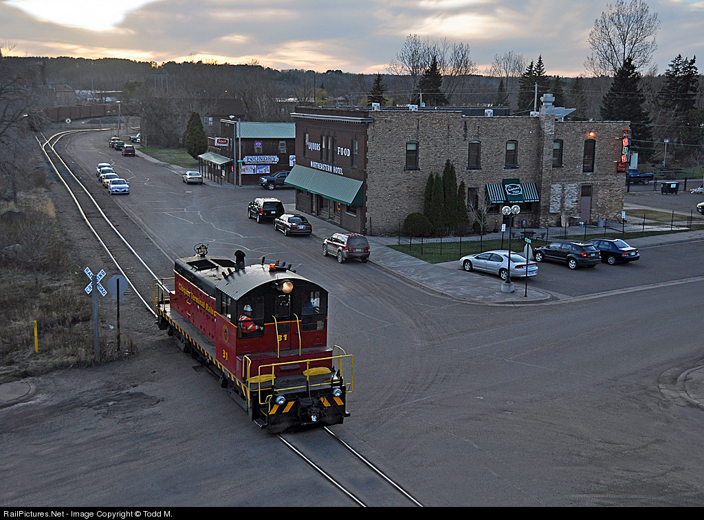 The night crew at the CTRR ride their long trusted steed, this SW1 built in 1941, out of the yard and past the Northeastern Saloon, (which displays an original hand written liquor license dated 1885 and has been in continous operation since 1903 having survived the great fire in 1918 which destroyed most of the town of Cloquet), while on their way to switch the Sappi paper mill, who own the railroad. The entire railroad boosts trackage totaling four miles.