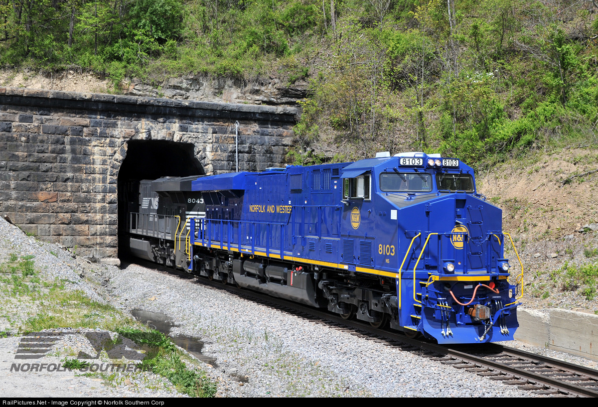 "NW" 8103 leads its first revenue train along the ex N&W mainline through Tunnel 4, which was recently enlarged to allow for doublestack clearance along NS's "Heartland Corridor". Casey Thomason photo, copyright Norfolk Southern Corporation. For more information, visit www.nscorp.com