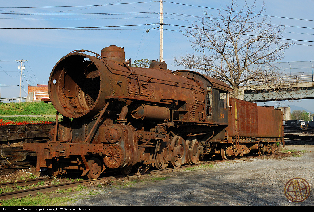 | An elder Norfolk and Western heritage locomotive. One of the 'Lost Engines of Roanoke', the 1151 is now part of the Virginia Museum of Transportation's collection. In the background is the east end of NS's Roanoke Yard where a couple locomotives representing a newer generation of motive power sit on this spring morning. |