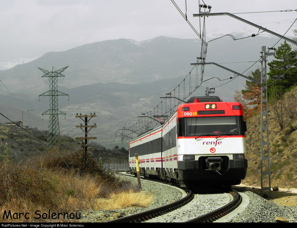 | Passeger train of the R3 line from Latour-de-Carol (french Pyrenees) and l'Hospitalet de Llobregat (Barcelona). This unit had an accident in MatarĂ³ the 9th February of 2012 and now is retired. |