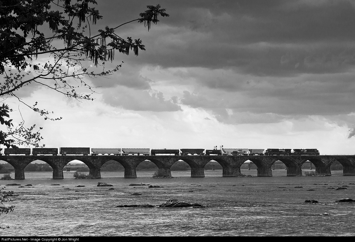 | Welcome to the famous Rockville Bridge on the former PRR mainline near Harrisburg, PA. It is the longest stone masonry arched railroad viaduct in the world at 3,820 feet. Within 10 minutes of this picture the skies would open up |