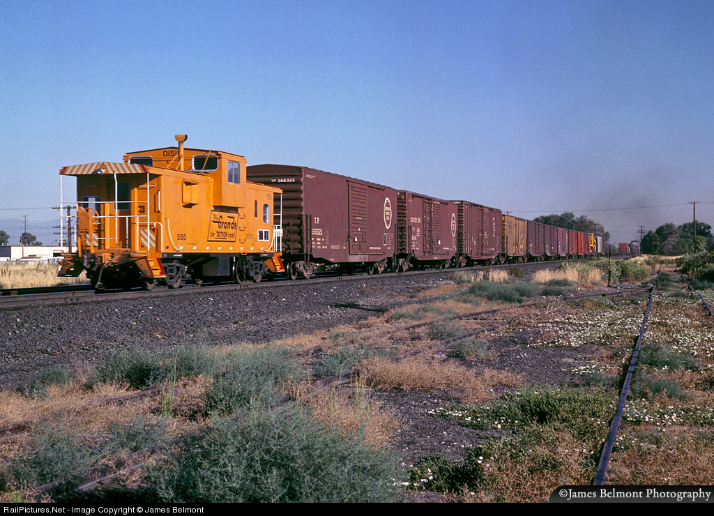 A new D&RGW wide vision caboose trails a hotshot westbound freight departing Provo, Utah. Rio Grande 01515 was the first of a 10 car order from International Car that featured Waugh cushioned under frames, axle driven generators and oil stoves. The metal box on the side of the car is an air filtration system designed to keep coal dust and diesel fumes away from the interior. The 01515-01524 were the Rio Grande's last acquisition of new cabooses.