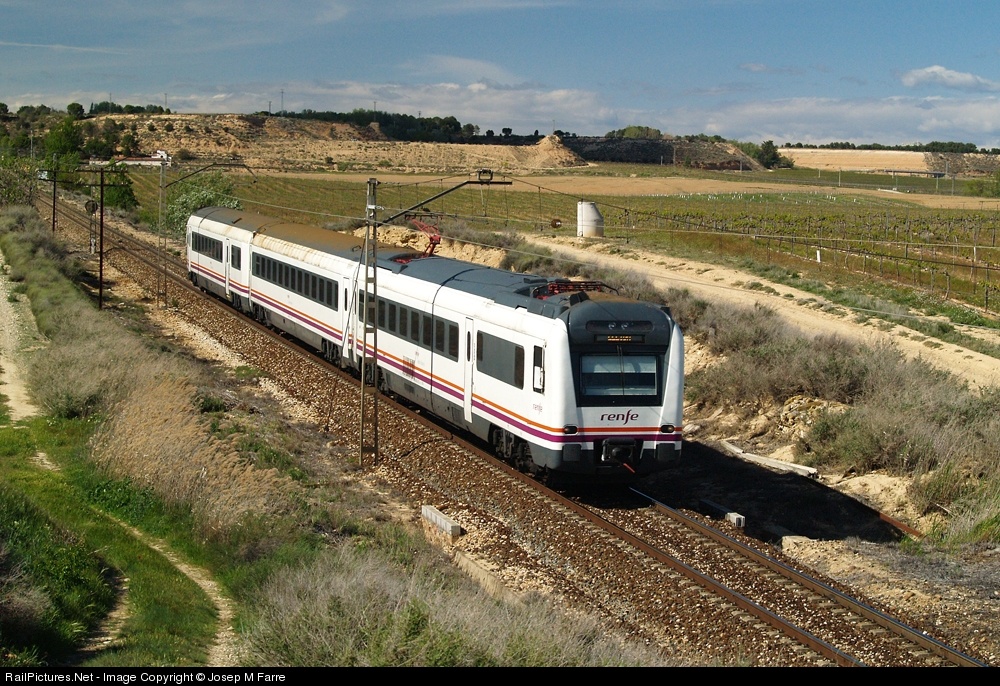 | A new livery for this refurbished 448 trainset. Here making a Zaragoza-Lleida regional service. |