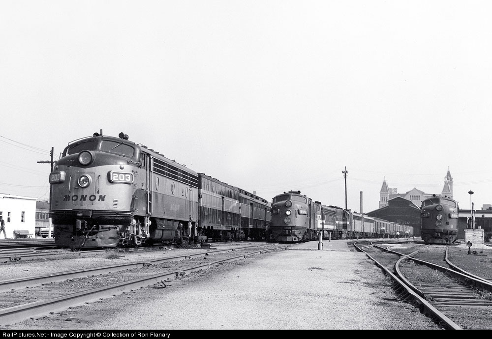 While L&N mail and express train number 4 readies for departure, Monon’s number 6 rolls out for Chicago in this Louisville Union Station scene from 1964. Number 4’s power is a motley mix of E6, FP7A, GP9, FP7A and an E8. The 12-car main line local is obviously overpowered, so this is a transfer of motive power to Cincinnati. (Charles Castner Photo)