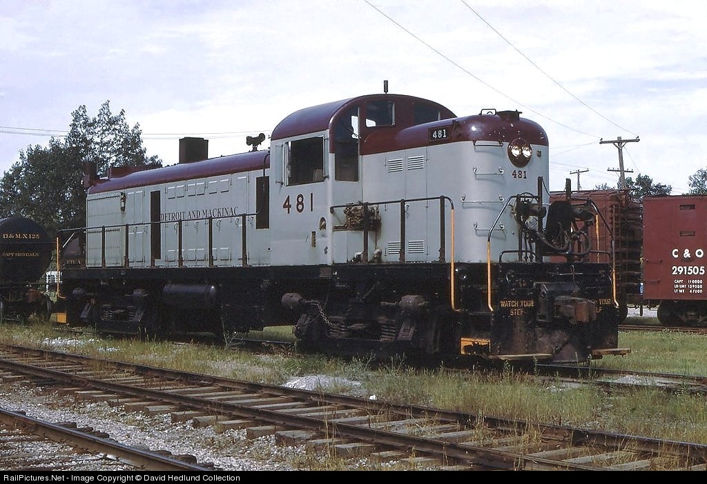 | D&M RS-2 481 in sharp paint. Note the C&O pulpwood car in the back ground that was converted from a boxcar.