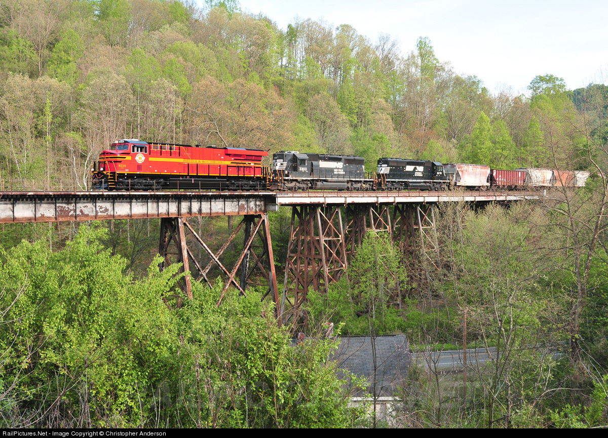 NS 8114 passes over Bootleg Trestle, just west of Natural Tunnel State Park.