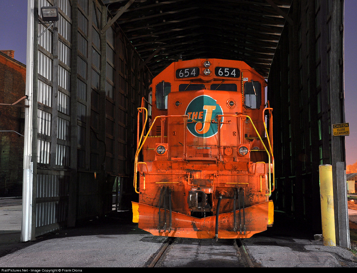 Built for The J in 1970 and usually seen roaming around Lake Michigan, this fine product from EMD now finds itself miles from its former home in Illinois and as one of the newest acquisitions for the Hartwell Railroad. This evening finds the SD38 sleeping under a shed on a frigid full moon night in November. If one is looking for some fallen flag painted locomotives, the Hartwell is the place to visit. Photo taken with permission.