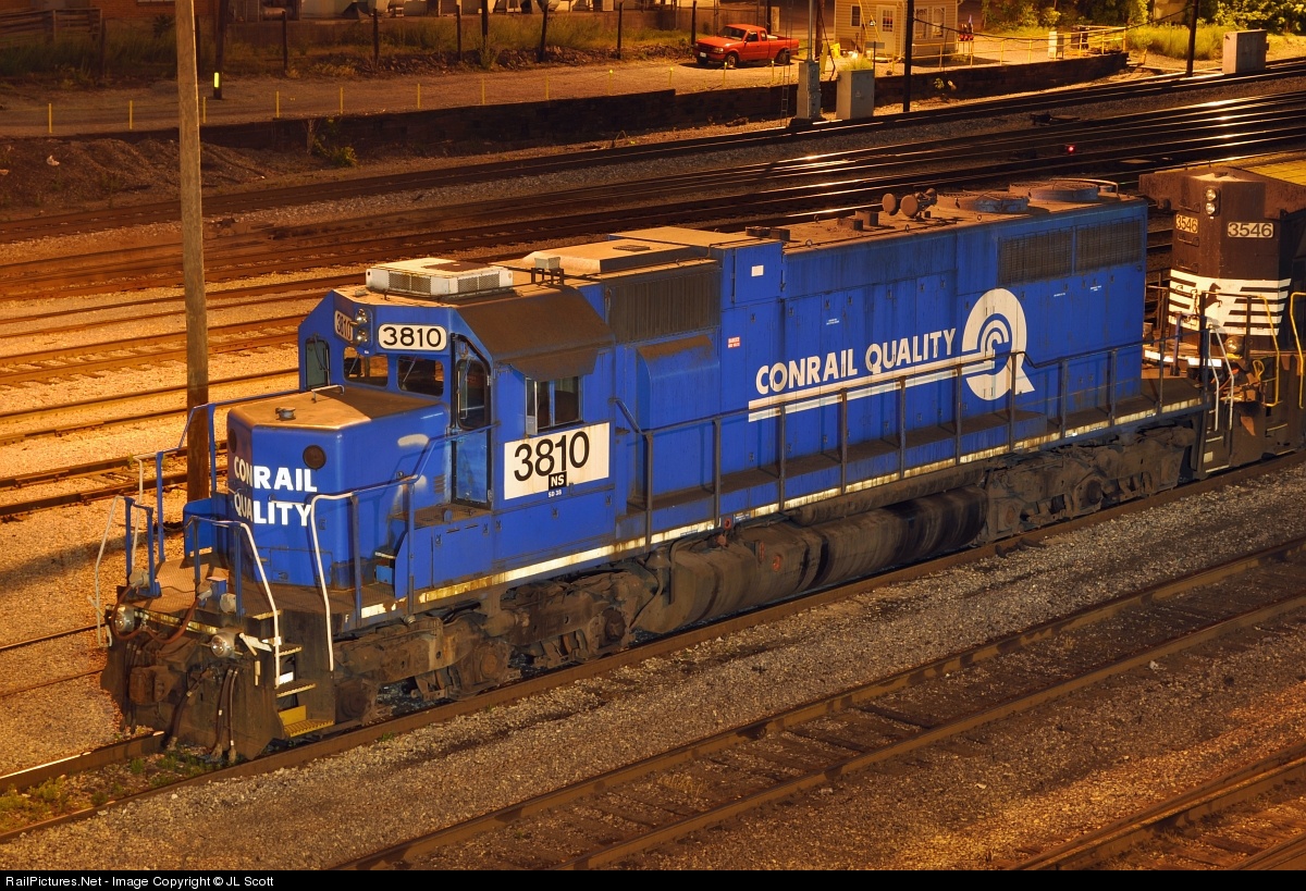 While visiting my home town of Roanoke, VA I was making the usual orbits through my old stomping grounds when I stumbled across this rare bird. I nearly turned the car over when it suddenly computed that I was looking at a "straight" SD38 still wearing Conrail blue.