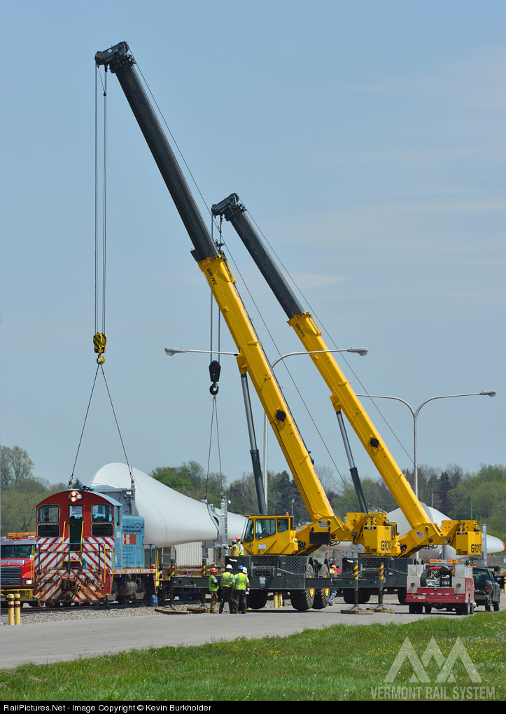 | The crew aboard the CLP GP16 802 have just finished switching out an unrelated to the windmill project customer and awaits the NYOG SW900 14's shove move to clear empty cars before retrieving them and clearing the yard for the NYOG 14 to pull another cut in. Full details of the move will be in Monday's Eastern Railroad News Online Magazine - http://easternrailroadnews.com |