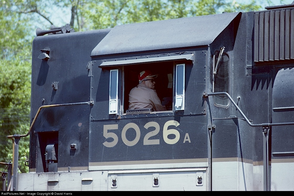 | It's a pretty safe bet the engineer on this train switching in Opelika, Alabama on a spring morning 37 years ago was close to the end of his career. But 5026 - three years old in this shot - is still earning money for NS at age 40. |