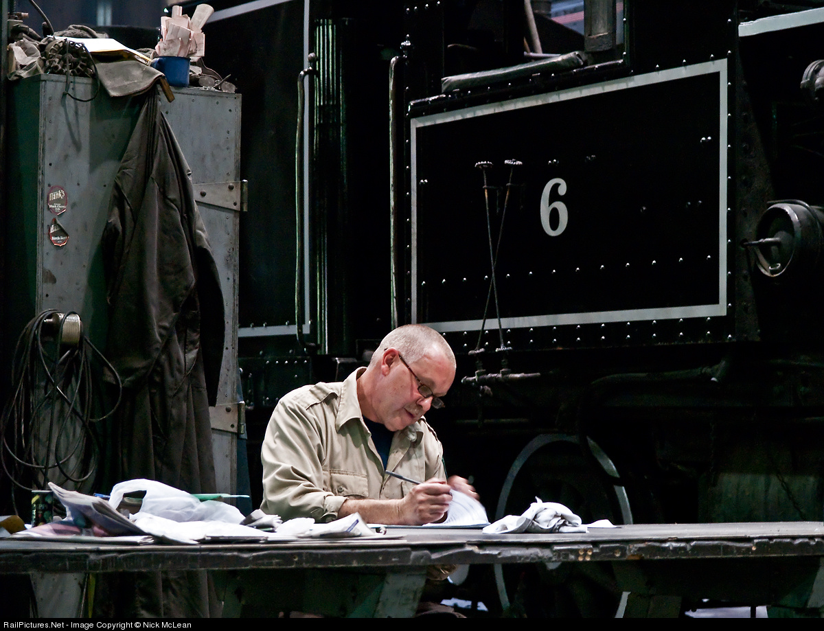 The glamorous part of the days is done, all the photo runbys are complete, and the railfans are headed for dinner, but the day is far from over. Now the paper work begins for the conductors, and this conductor has but a cold Heisler to keep him company while the work ensues.