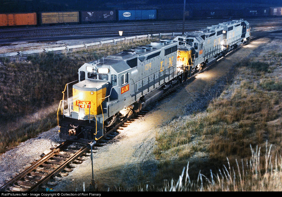 L&N's company photographer posed three brand new SD35s on the escape track under the hump at DeCoursey one evening in 1965 for this scene. The shot was used on the cover of an issue of the L&N Magazine, among other places. Alas, DeCoursey would be closed after CSX was formed, with all Cincinnati-area yard functions consolidated at the former B&O/C&O yard at Queensgate. DeCoursey was L&N's largest facility, but it was in an an out of the way location to be of any real benefit in the post-CSX world.
