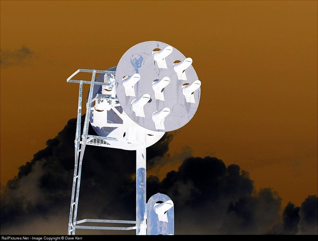 A view of the old PRR signal at the Oliver Township Building near Milepost 131. Converted to Negative in PSP 7.0.