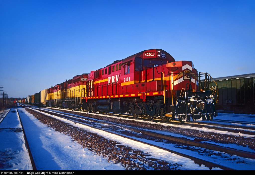 One of the few (maybe the only) times a former LS&I Alco RSD-15 “Alligator” led a Fox River Valley train. The freight is entering Butler Yard on the C&NW on a cold February 24, 1990. Trailing the former Santa Fe/LS&I/GB&W Alco are two former BN SD24s, Nos. 2401 and 2402.