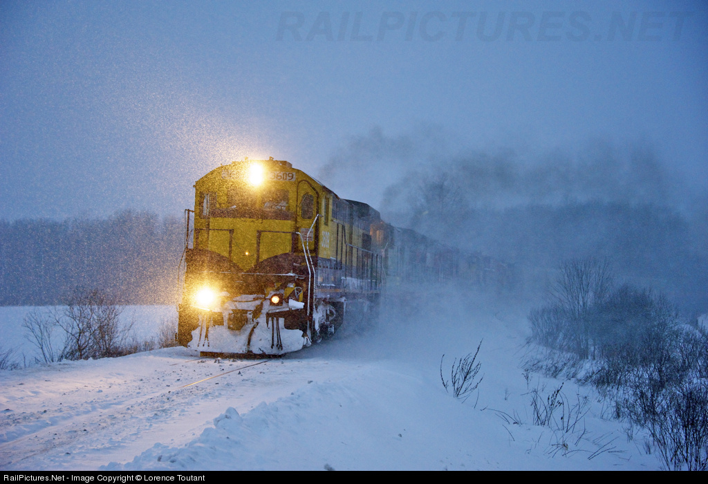 MMA 3609 East head into the snowstorm with a five units GE consist (4 C30-7 and a B23-7) at the end of the day.