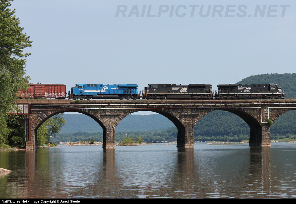 NS 11R crawls across the Rockville Bridge with the CR Heritage Unit in the #3 spot on a warm June morning.