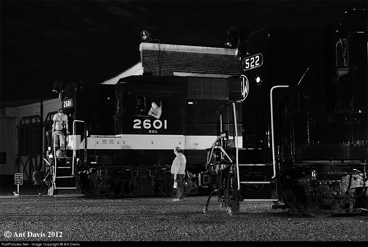 The crew takes a brief moment to discuss the rumor of a possible merger as signs of the truth are evident as N&W 522 sits in the forground awaiting assignment.