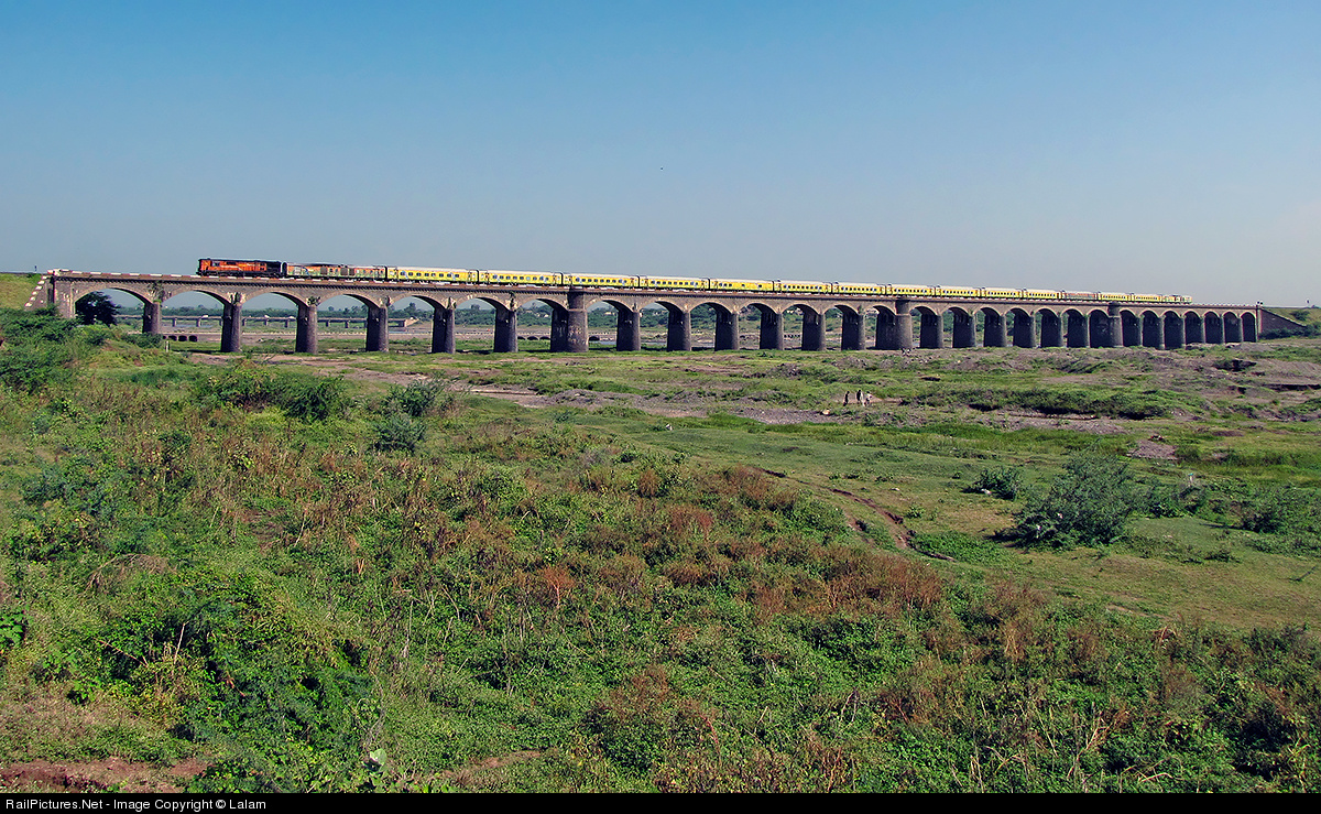 Howrah Pune Duronto express crossing Bhima river bridge near Daund.