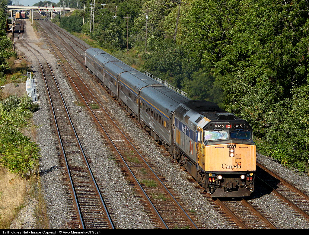 | VIA 83 has just departed Aldershot station. At the time of this photo, 6415 was one of only two remaining original F40PH-2s (not rebuilt and without the third headlight). Now this look is just a distant memory as the final rebuilds are now being completed at CAD. |