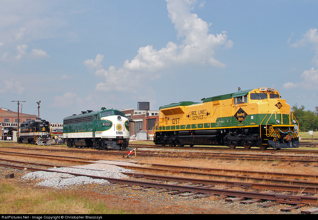 During the afternoon parade of the Conrail family of locomotives, NS SD70Ace 1067, painted in the Reading heritage scheme, rolls past Southern FP7 6133 and GP30 2601. The Lackawanna heritage unit can be seen being spun on the turntable between the two Southern engines.