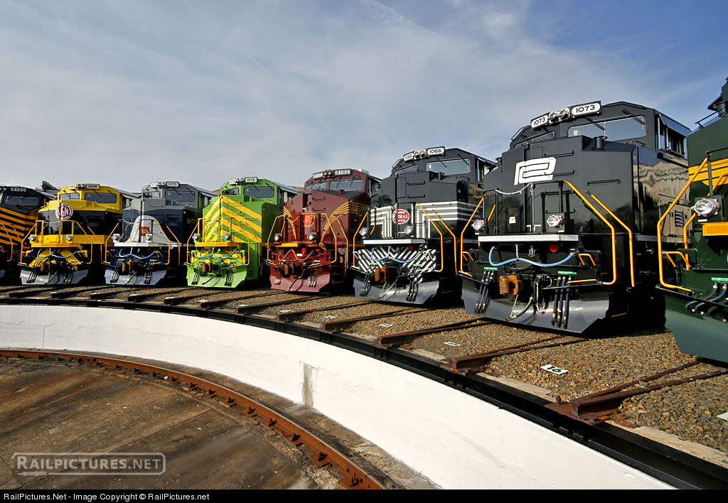 A view from the turntable of NS' gathering of its heritage locomotives at the North Carolina Transportation Museum in Spencer, NC during the media preview day. Thanks to NS / NCTM for hosting this event and for inviting RailPictures.net. (RailPictures.net / Chris Starnes photo)