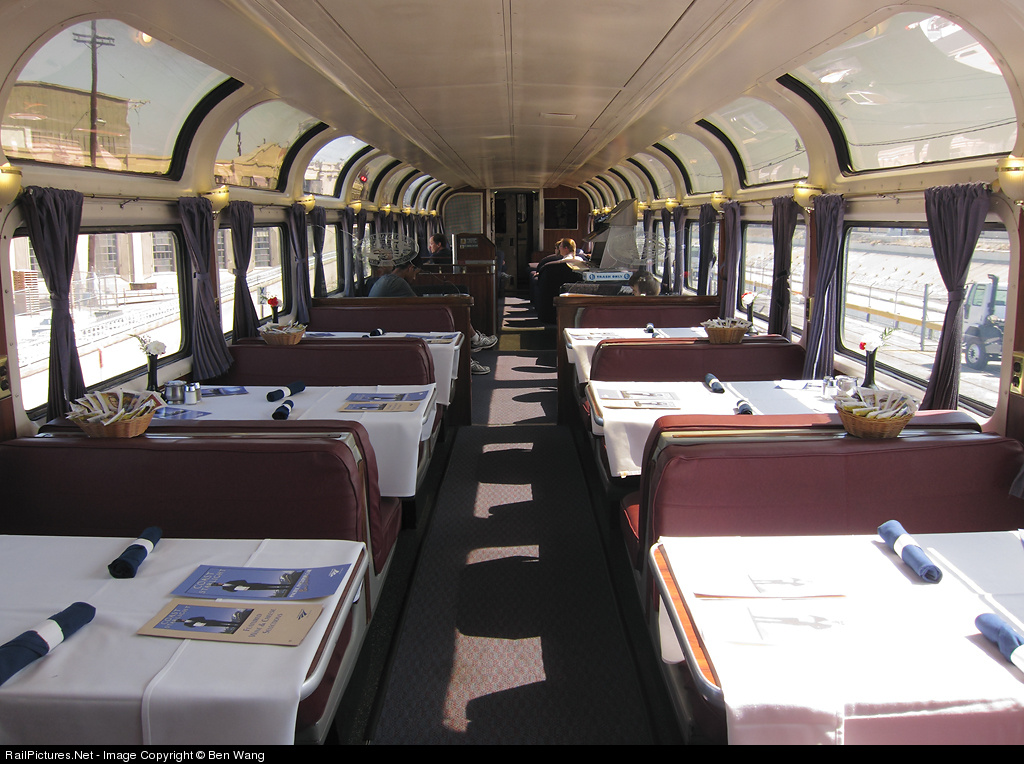 Tables setup for lunch on board the Coast Starlight Pacific Parlour Car #39973 "Santa Lucia Highlands".
