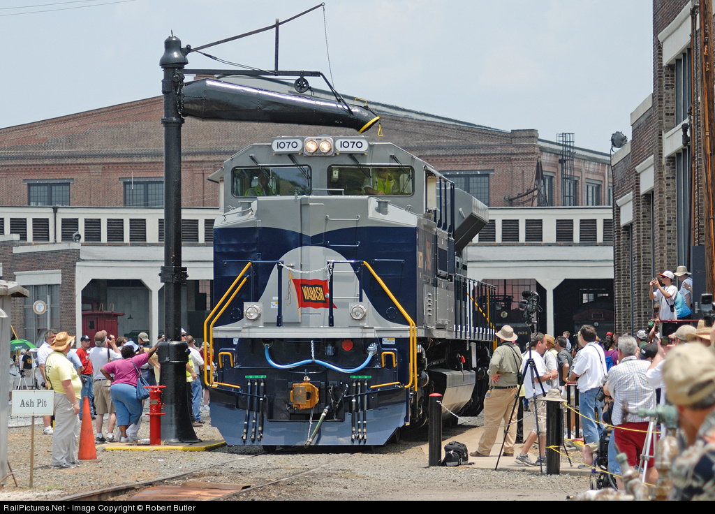 Except for the lady bracing the water plug, all eyes are on the NS Wabash Heritage unit as she rolls off the turntable.
