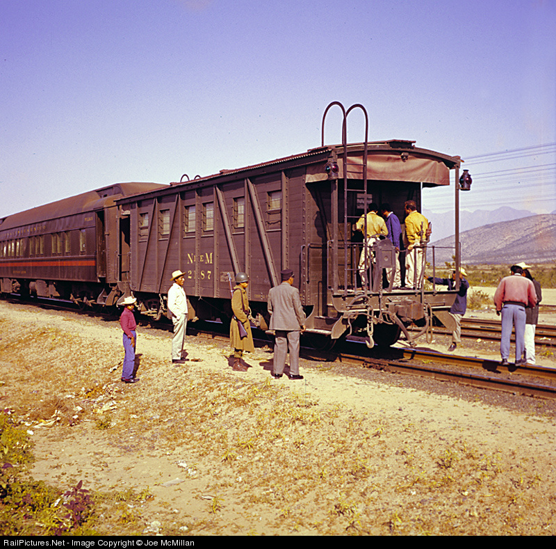 The NdeM was still paying employees at outlying points by pay car in 1962. In this photo, pay car 2187 is coupled to the rear of Train No. 4, which was a secondary train from Laredo to Mexico City.